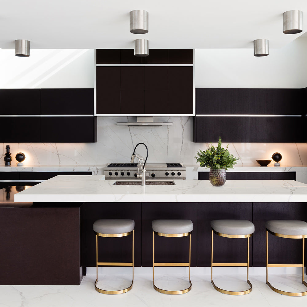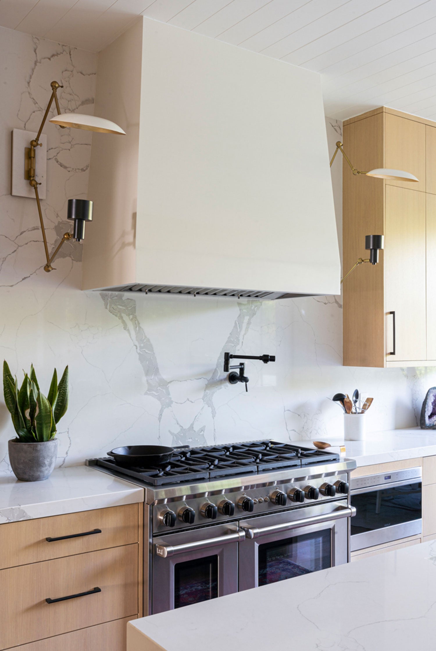 Once the cabinet colors have been selected, it is time to put your original stamp on your kitchen and select the perfect backsplash. Go for handmade or Moroccan-inspired tiles for your backsplash, or expand the gorgeous quartzite slab counter up the wall to provide a unified look.