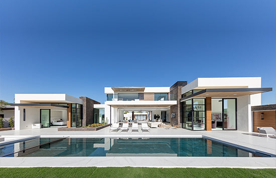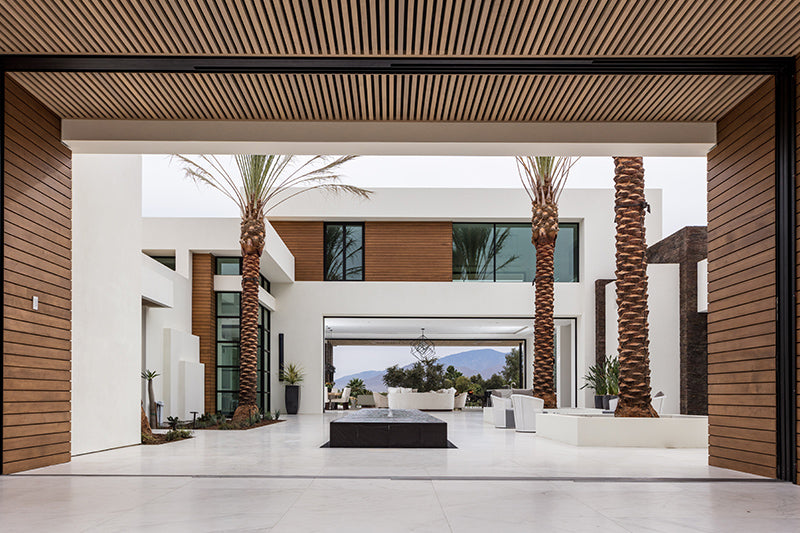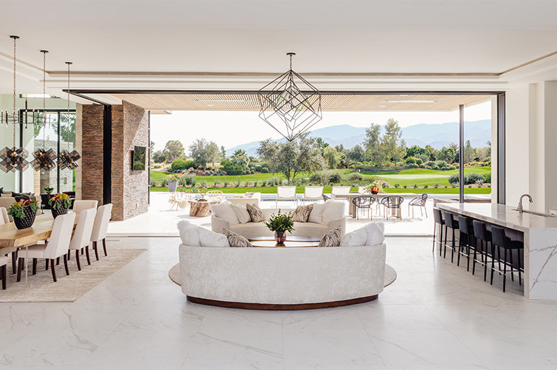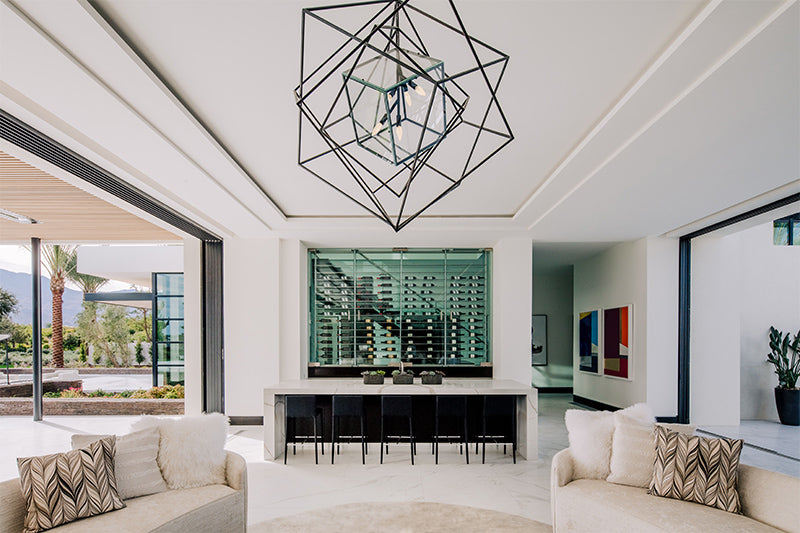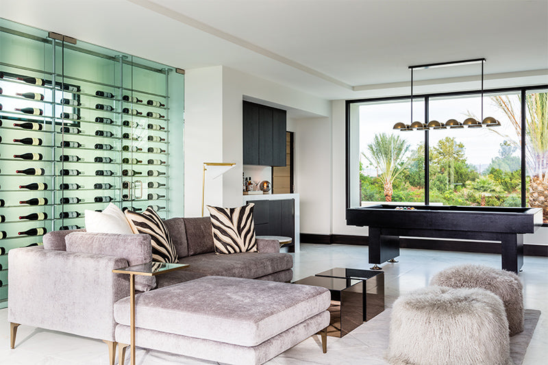 Using slabs of natural stone and marble then combining them with textures found in desert hues and indigenous plants, we produced contrasts to the outside world and recreated the light play that is so intriguing in the desert. JAC also created and manufactured custom furniture pieces that reinforced the design tension of light and dark and textures to good effect as well as using modern airy lighting that feels timeless. This home exudes an elegance that befits its geography and members only location as well as a certain kind of ‘je ne sais quoi’!
